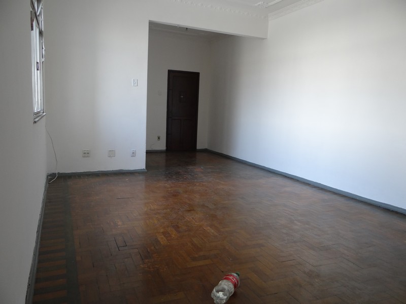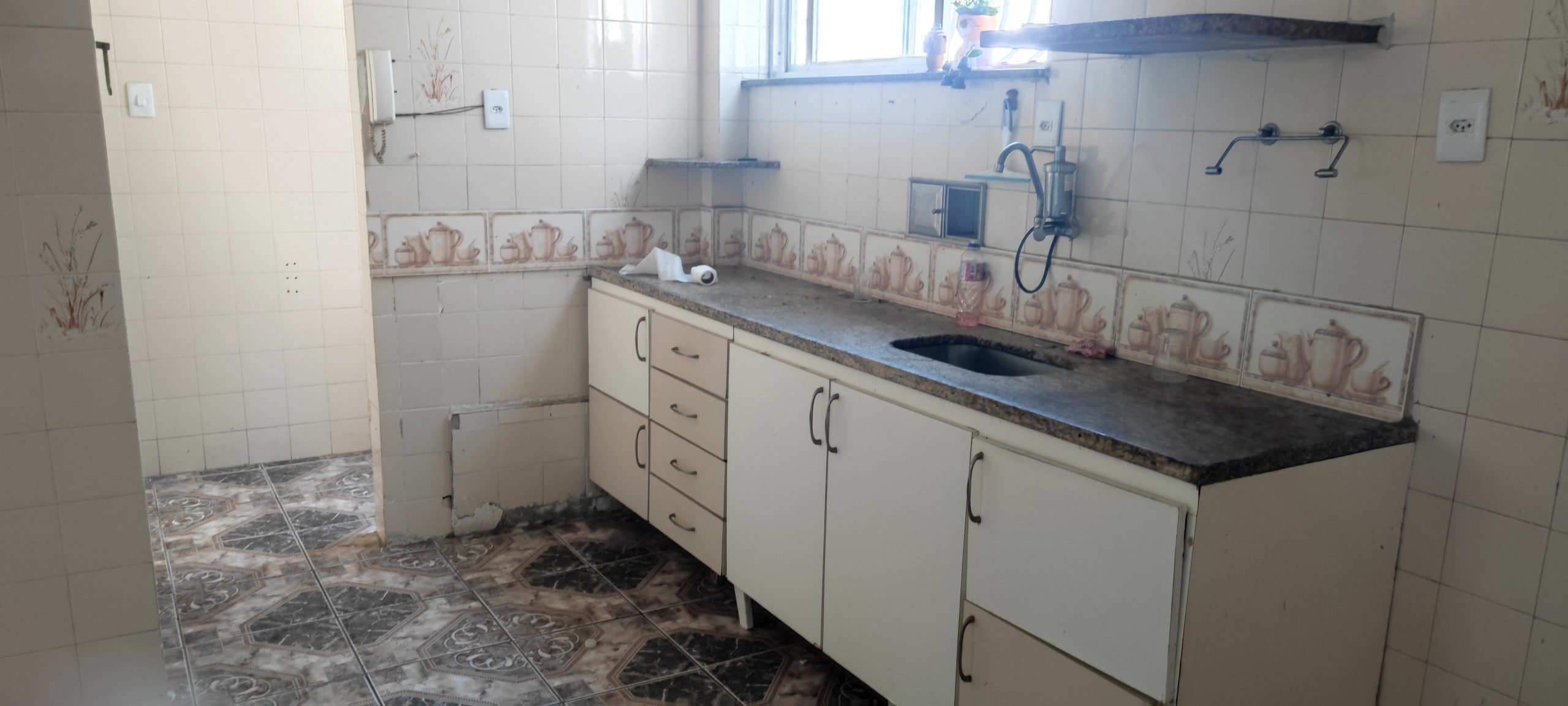 Apartamento com 03 quartos, salão, copa e cozinha, banheiro social completo, dependências de empregada, área de serviço.